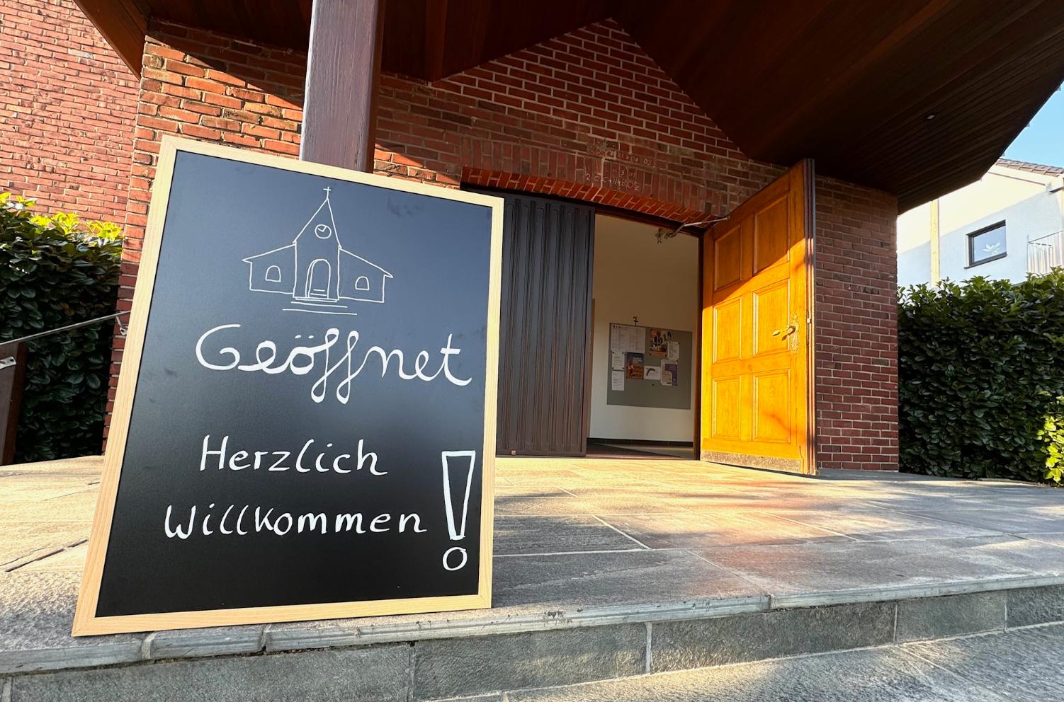 Mit großer Freude präsentieren wir in St. Marien unser neues Willkommens-Schild, das ab sofort alle Gäste unserer Gottesdienste und Veranstaltungen in Empfang nimmt. Dieses Schild ist mehr als nur ein freundlicher Gruß – es steht symbolisch für unsere gelebte Willkommenskultur in der Gemeinde St. Marien und der Initiative "Netzwerkkirche" sowie der GdG Korschenbroich.